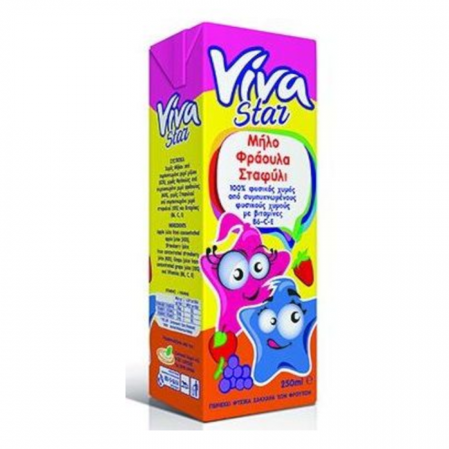 Viva Star Girl Μήλο Φράουλα Σταφύλι 27 τεμ 250ml (Κιβ.)