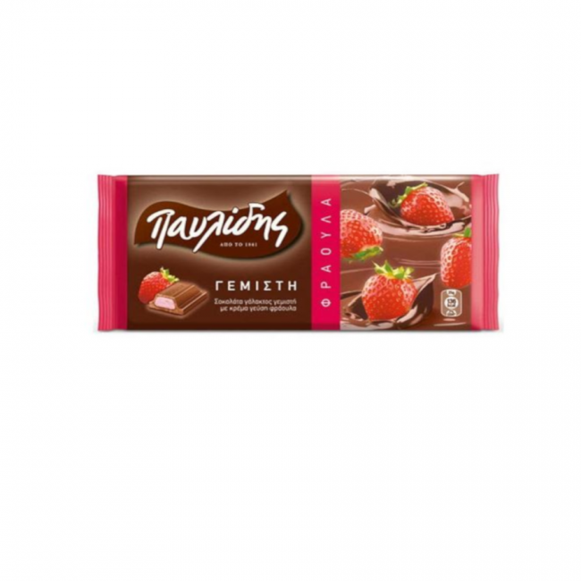 Παυλίδη Σοκολάτα Γεμιστή Φράουλα 100γρ(Κιβ.)
